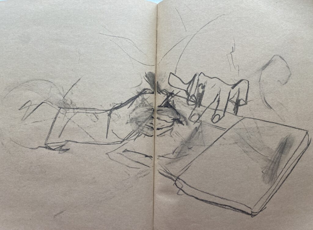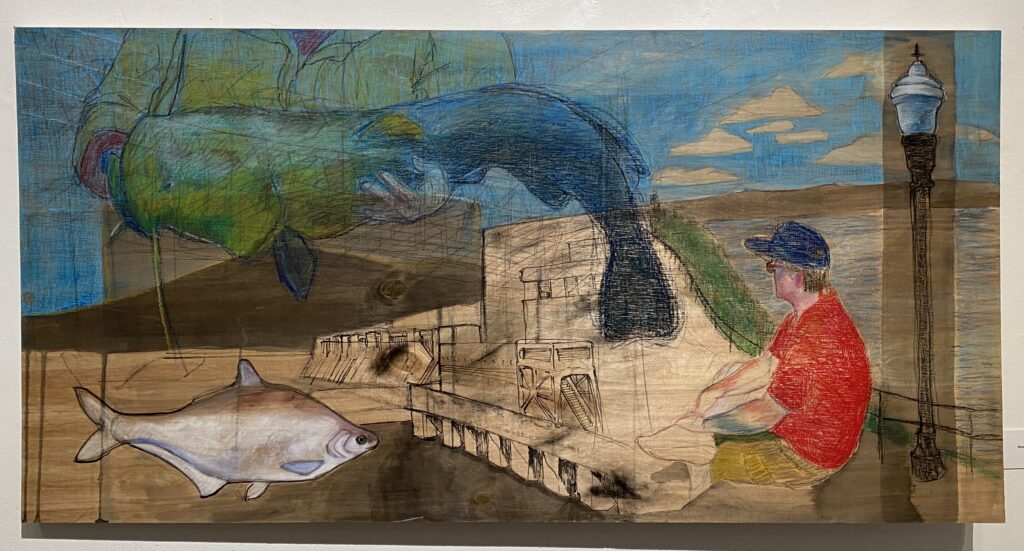 Michael #1, Willow charcoal on toned paper, 2026 Michael #2, Willow charcoal on toned paper, 2026 Untitled, Ink on toned paper, 2025 Untitled, Collage on toned paper, 2025 Feedback Loop (1 of 3), Mixed Media on Wood, 2023 Feedback Loop (2 of 3), Mixed Media on Wood, 2023 Feedback Loop (3 of 3), Mixed Media on Paper, 2023 Untitled, Mixed Media on paper, 2023 Mountain Memories, Found Object Sculpture, 2022 Detached Garage, Found Objects and Photography, 2023 Detached Garage (Detail), Found Objects and Photography, 2023 Detached Garage (Detail), Found Objects and Photography, 2023 Retail Therapy, Mixed Media, 2023 Peanut Gallery, Mixed Media, 2023 Flying Fish, Wood and Fabric Sculpture, 2022 Delta, Mixed Media, 2023 Bert, Mixed Media on Wood, 2022 Alligator Alley, Oil and Collage on Canvas, 2023 Crayfish Caper, Acrylic on Canvas, 2023 Reservoir, Mixed Media on Wood, 2024 Mama's Boy, Acrylic on canvas, 2024 Untitled #3, Mixed Media on Paper, 2023 Pluck, Acrylic on Canvas, 2023